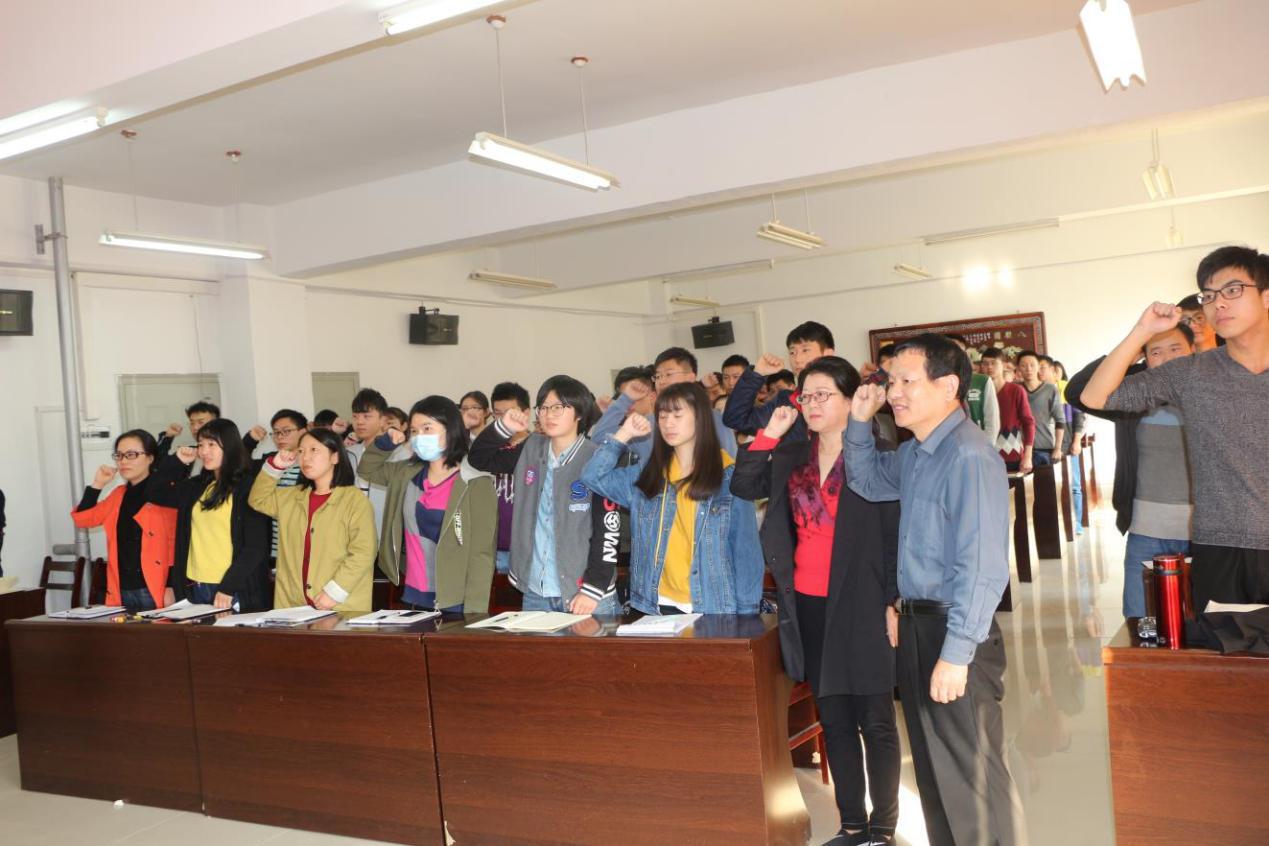 分党委副书记佘珠花以“十九大”中的“不忘初心,牢记使命”这个话题拉开了此次仪式的帷幕,以紧贴时代脉络的精神阐释对当代党员的新要求。学工办负责人郑璐淳老师宣读了党员实践岗通知,通知提出要统一党员思想,提高党员认识,加强党风党纪的建设,切实落实党员职责和使命。