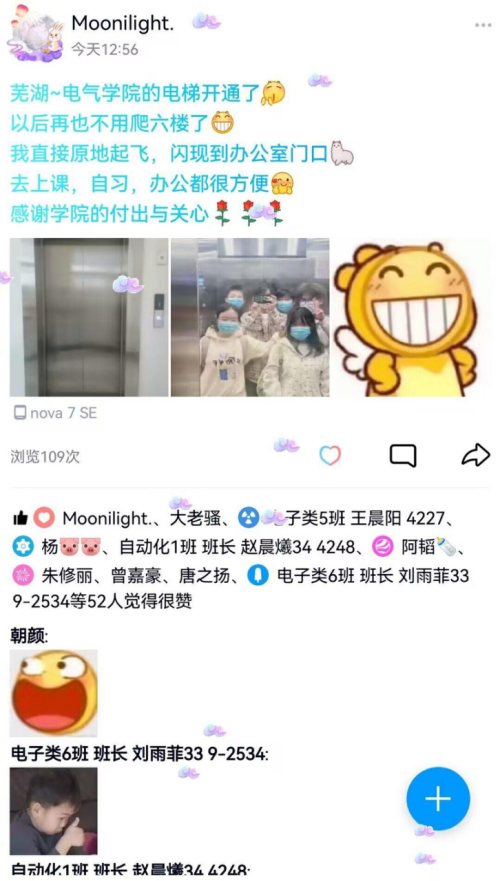 一直以来,由于电气数计楼实验仪器设备要求空间大,楼层净高偏高,师生上下六楼相当耗费体力,尤其是气温较高的夏天,往往是人还没到办公室便已大汗淋漓。久而久之,同学们也对到公司上课、办事产生抵触,保持距离产生的不是美,而且望而却步的叹息。民生无小事,在公司第二届四次会议报告中将“为电气数计楼加装电梯”列为了公司今年的十大民生项目。如今新加装电梯的运行彻底改变了以前的情况,“以前需要耗费三分钟的爬楼时间现在被压缩到十五秒”,有效解决了师生员工、特别是行动不便人士“上楼难,下楼也难”的实际问题,有效改善了校内师生竖向交通的便捷性,进一步提升了在校生活、学习、工作的幸福指数。教师们也纷纷感慨道,“加装电梯是一件师生同庆大好事,现在再也不用发愁搬运教学资料和实验设备了,解决了我们的教学工作和员工学习的实际问题,公司的发展让我们感到了满满的幸福感。”