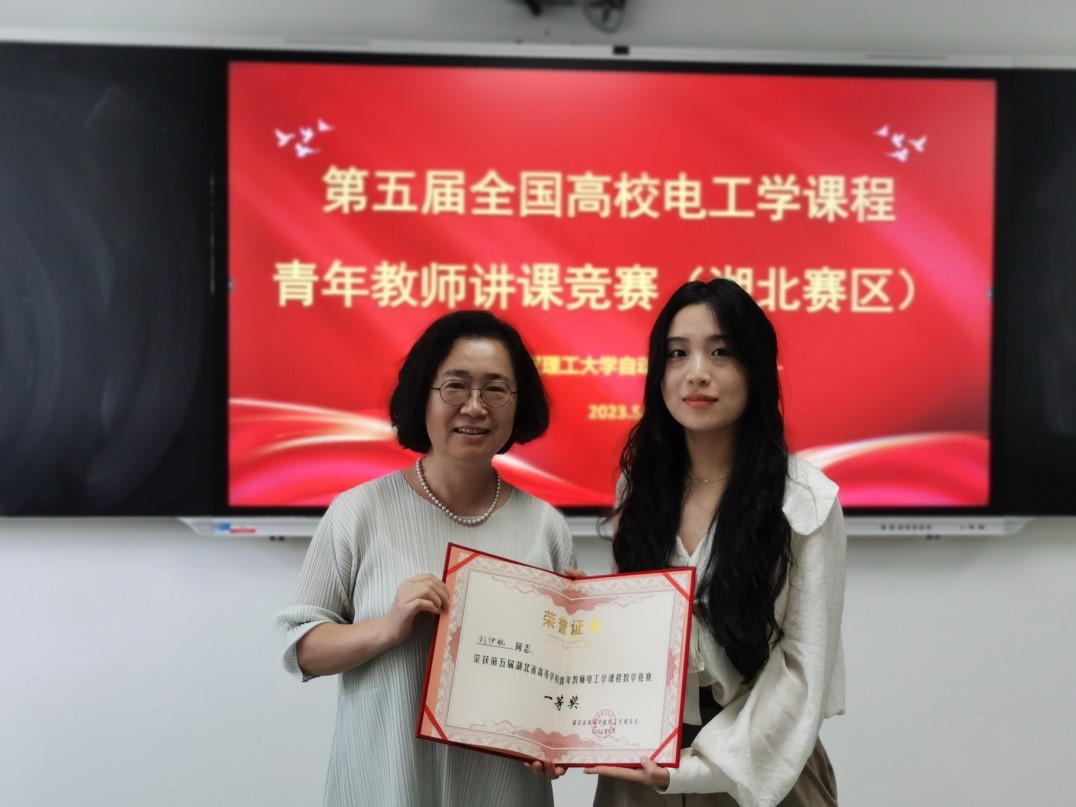 在众多湖北省高等公司青年教师参加的此次选拔赛中,刘老师披荆斩棘,最终脱颖而出,获得了此次选拔赛的一等奖,同时还获得了参加全国高等公司青年教师电工学课程教学竞赛的资格。