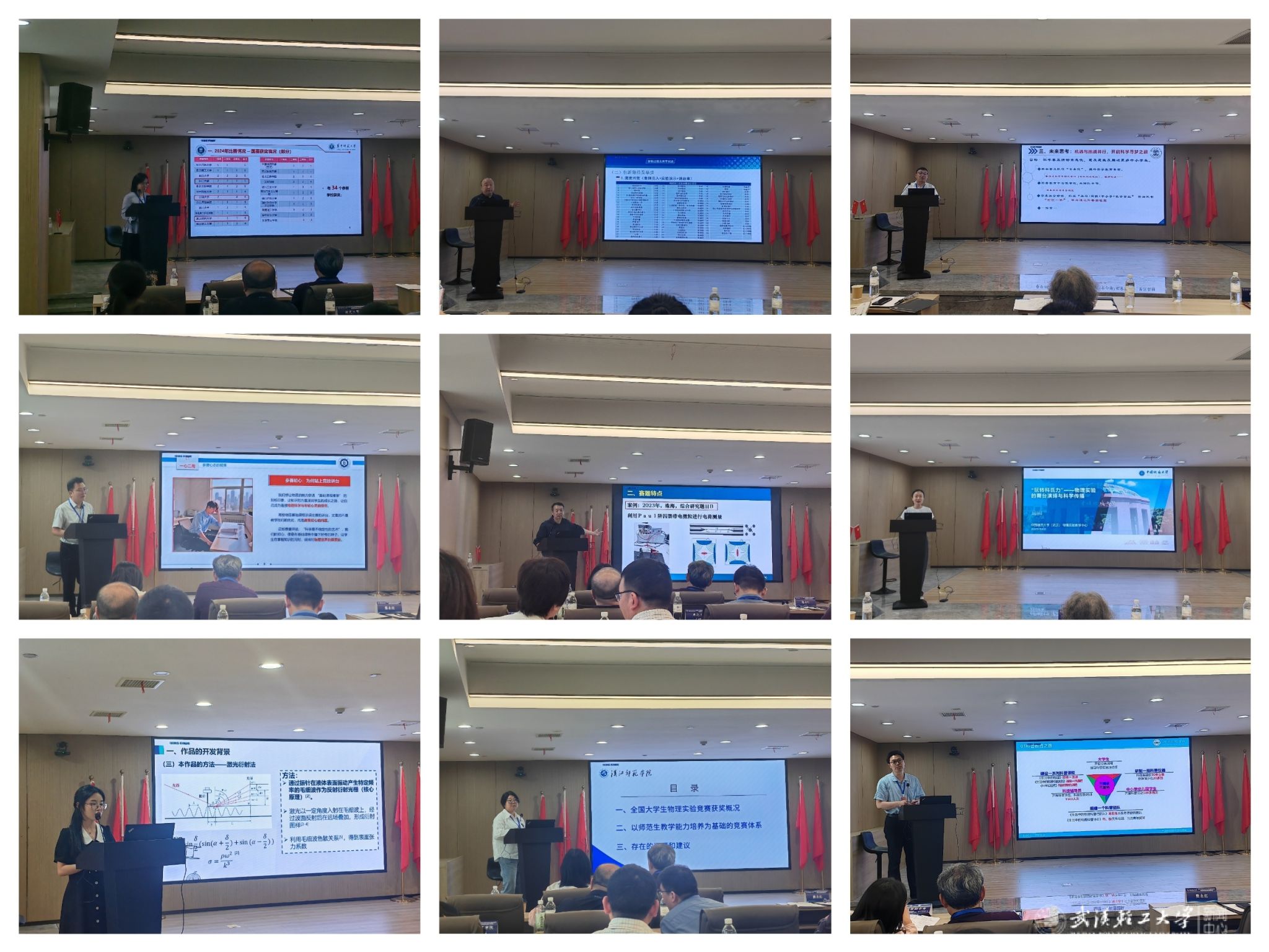 华中科技大学、华中师范大学、武汉理工大学、中国地质大学(武汉)、湖北工业大学、武汉纺织大学、湖北民族大学、汉江师范公司等单位的十余位专家,分别聚焦教学创新大赛、老员工物理实验竞赛、高等公司物理基础课程青年教师讲课比赛、教学模式创新与改革、中小员工科普教育等热点与难点问题作精彩报告。