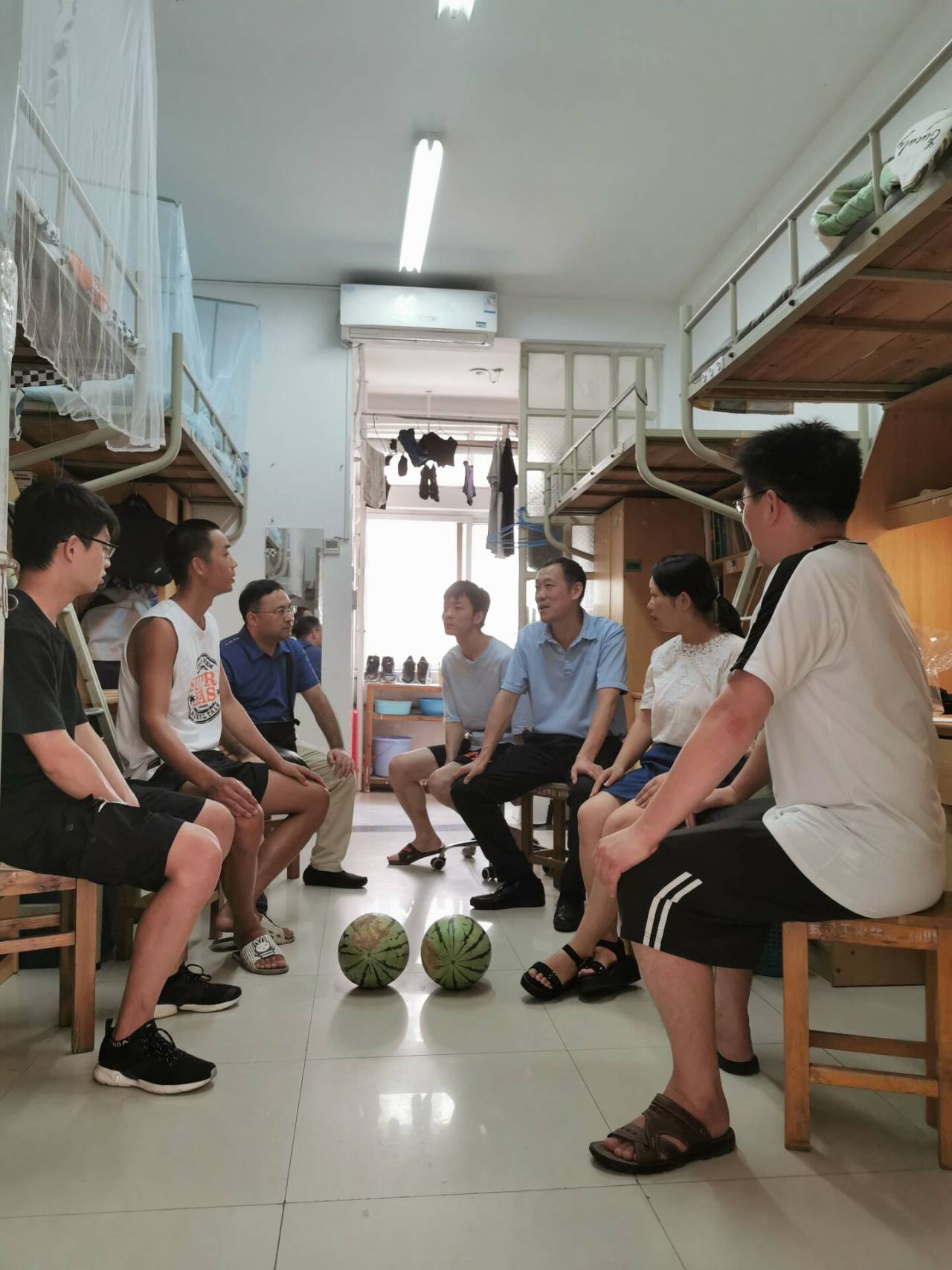 8月7日上午,公司党委书记李启武、副书记罗文森、副经理李相虎在学工办主任郑璐淳和辅导员侯春莉的陪同下,到金银湖宿舍四栋看望beats365官方网站暑期留校员工,并送去消暑西瓜,了解他们的暑期考研备战、工作实习和生活等情况。
