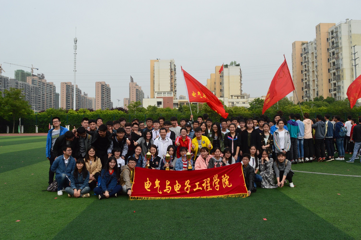 公司党委书记黄海林、公司党委副书记佘珠花、分团委书记李方露老师同院系运动员和后勤人员合影留念,分享这份荣耀与喜悦。beats365官方网站用优异的成绩为近段时间的辛苦训练交上了一份满意的答卷,并用实际行动彰显了电气学子的风采。