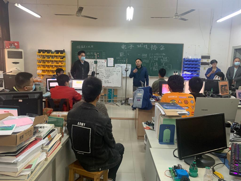 今年电子设计大赛开赛在即,10月9日下午,公司党委副书记罗文森老师、18级辅导员罗俊老师、19级辅导员李奎老师和分团委书记李方露老师,一起前往比赛现场,看望参赛员工。