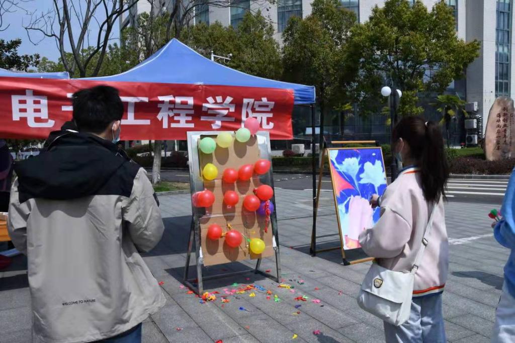 开幕式当日,老师和员工们一起玩耍,飞镖扎气球、扔沙包入盒、五人以鼓颠球,前来体验的人络绎不绝,午时的广场上一阵阵响起欢声笑语。活动中,同学们写下一条条治愈性言语,宣传板上写下一句句温暖人心的话语,以此倡导员工善待自我、关爱自我,以积极、豁达的心态体验生活经历,并善爱他人、善爱自然、善爱社会。