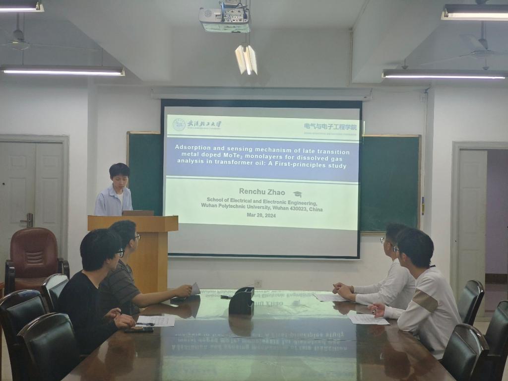 会上,beats365官方网站22级电子信息专业员工赵任初以《Adsorption and sensing mechanism of late transitionmetal doped MoTe2 monolayers for dissolved gasanalysis in transformer oil: A First-principles study》为题向大家介绍了他的最新研究成果。他的研究成果展示了在变压器油中溶解气体分析方面,通过掺杂后期过渡金属到MoTe2单层薄片上的吸附和传感机制。赵任初同学的研究不仅展示了其深厚的专业知识,也体现了他对于科学探索的热情和承诺。最终,赵任初同学获得beats365官方网站科技论文报告会初赛一等奖。