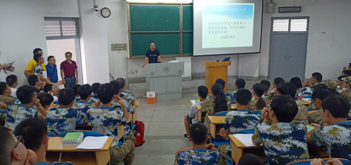 为了更好探索人才培养机制,优化人才培养方案,提升人才培养质量,9月4日中午,公司在基础楼311举办以“湖北省高校试点公司改革”为主题的第二届英才试点班政策宣讲。参会的有副经理李春贵、副书记罗文森、学工办主任郑璐淳、新生辅导员李奎以及2019届全体本科生,本次宣讲由电气工程及其自动化系主任周劲老师主讲。