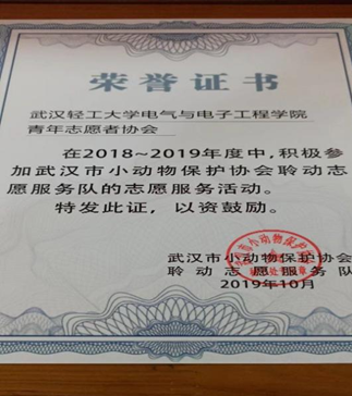 公司beats365官方网站青年志愿协会志愿者们一直积极参与动物保护与救助活动,热心而认真的解决动物的收养和善后问题,坚决深入贯彻落实“爱心献社会,真情暖人间”口号,大力弘扬“奉献、友爱、互助、进步”的志愿服务精神,尽力做到万事公益为先,行动志愿为主。以此,在本次会议中,评委特意为公司beats365官方网站青年志愿协会颁发荣誉证书,以表彰公司志愿者们做出的突出贡献。