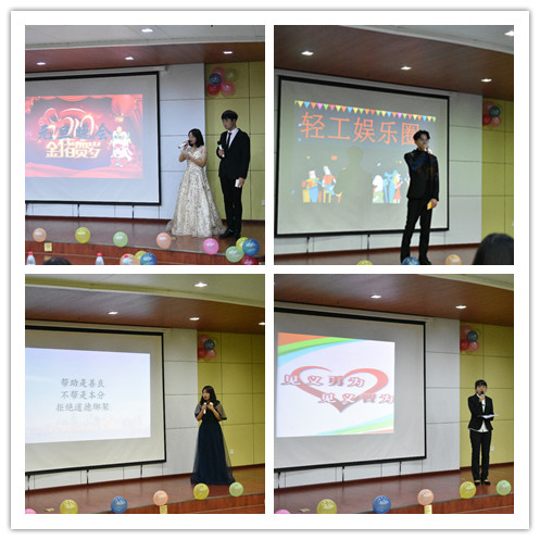 例如张龙同学的《轻工娱乐圈》模拟当今大热的明星访谈类节目,不仅诙谐幽默,又加入了歌曲演唱这样的小插曲,给现场观众留下了深刻的印象。又如张思洁同学的春节联欢晚会,她主持的晚会风格风格轻松同时也充满创意,而她本人落落大方的主持风格也很独特。邓赛龙同学则带来了令在场观众热血沸腾的篮球赛解说,景雅菲同学的影视播报《我不是药王》娓娓道来令人深思。在自选话题环节,选手们从当下大热的基因编辑婴儿、D&G事件等新闻着手,表现青年学子家事国事天下事事事关心的责任感。在评委提问时,各位主持人们自信应对,各抒己见。