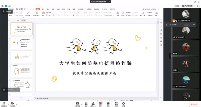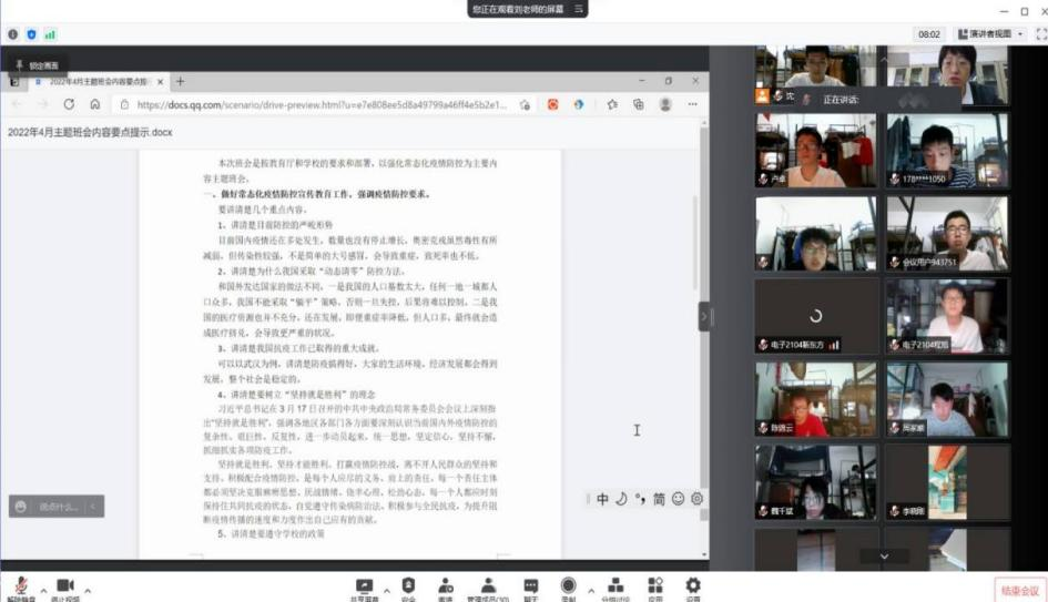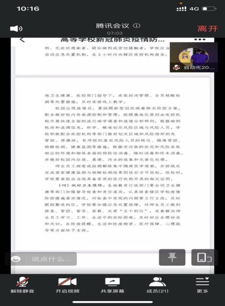 为了响应近期省教育厅关于开展关于疫情防控、防电诈和国家安全教育主题班会的要求,beats365官方网站在4月18日-4月24日开展的以“谨防电信诈骗 强化疫情防控”为主题的线上统一班会。此次会议由全院各班班长组织,班主任主持,同学们积极参与。