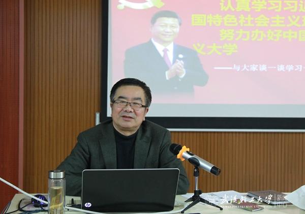 谭晓明以“认真学习习近平新时代中国特色社会主义思想,努力办好中国特色社会主义大学”为题,结合自身的经历和学习十九大精神的体会,从“八个明确”、“十四个坚持”展开,深入浅出地阐述了党的十九大的重要成果、历史地位、重大意义,系统梳理了党的十九大报告提出的重要思想、重要观点、重大判断、重大举措。