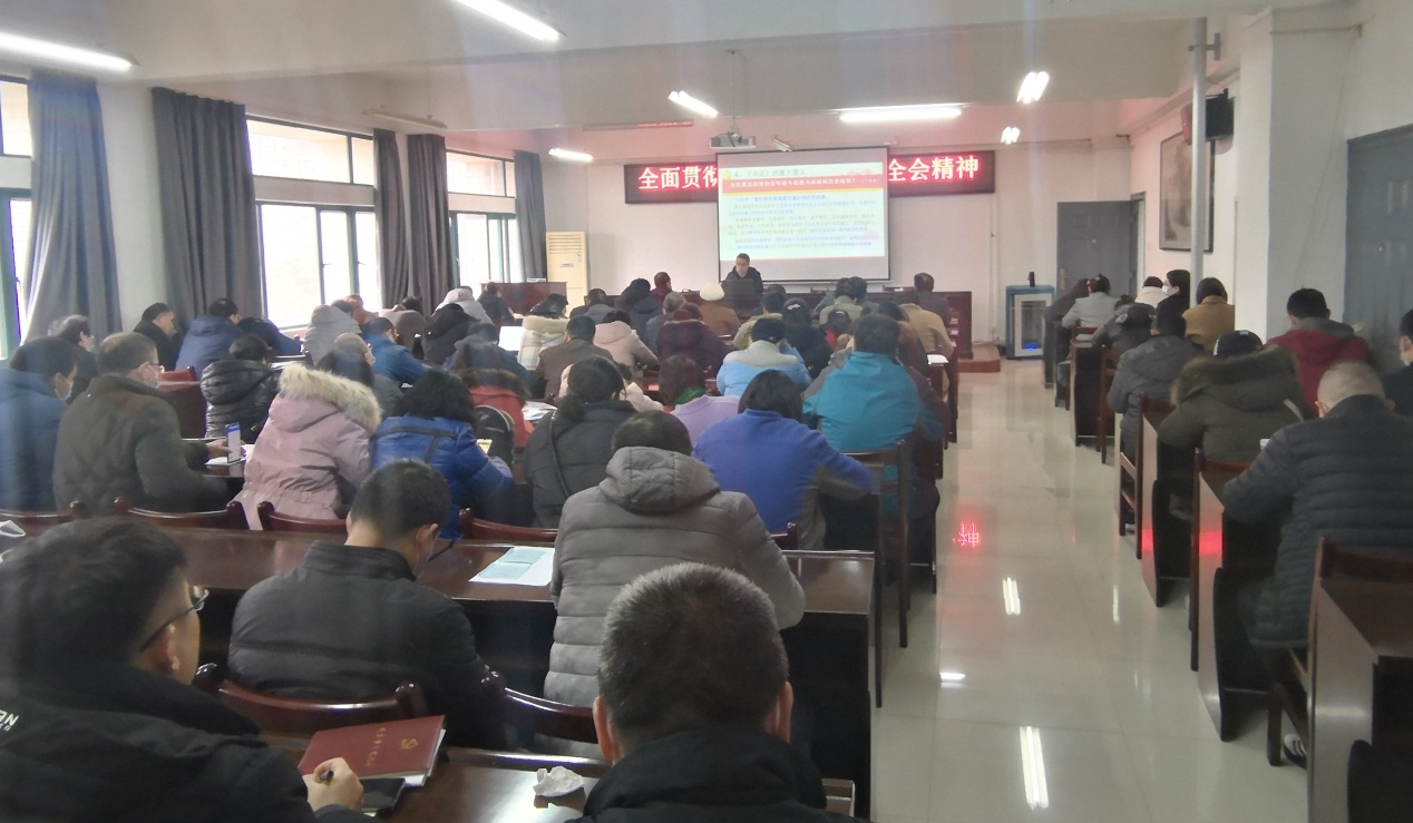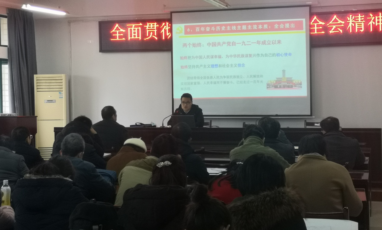 12月16日下午, 校宣讲团成员、马克思主义公司胡翊博士, 以《百年辉煌 再启新程——学习中共十九届六中全会精神》为题作宣讲报告。会议由公司党委书记李启武主持,全体教职工聆听了专题宣讲。