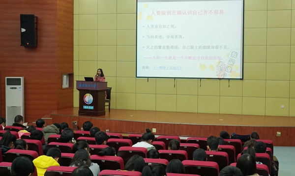 梁教授用精彩的短视频《一颗种子的旅程》为本次讲座拉开帷幕,告诉了同学们这样一个道理人要做到正确认识自己并不容易。接着,梁教授通过分析一个有趣的心理实验告诉了同学们什么是正确认识自我,那就是要拥有积极的自我认识。