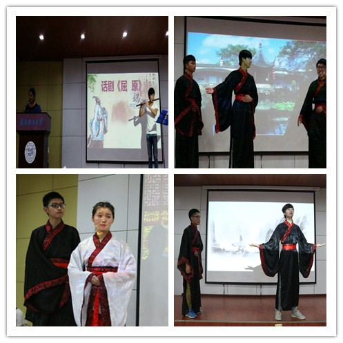 话剧《屈原》、《一诺千金》将分享会推向高潮。在悠扬的笛箫伴奏中,话剧《屈原》演绎了著名爱国诗人屈原的坚毅与正直,演员们用熟练的表演在举手投足间向观众再现春秋战国时期的仪态与礼节,读书、行走、行礼、对话,将人物的性格、政治主张刻画的淋漓尽致,使同学们在看话剧、品经典、学习屈原爱国主义精神的同时,也了解了我国传统礼仪文化,深情的讲解配上婉转的古琴声让在场的许多同学潸然泪下。