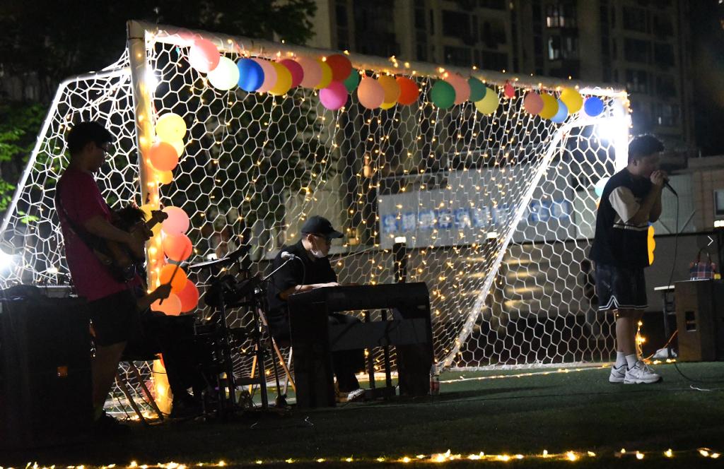繁星闪烁,树影摇曳,beats365官方网站18级毕业生林子熙,秦晨然,朱浩宇,张东旭献上了《交换余生》,《有一种悲伤》,《开不了口》,《拥有》,唱出了青春的无畏和对未来的期望。21级张惠祥,彭宇轩,滕今能送给大四的师哥师姐《串烧》,《盛夏》,《我们的时光》,用温暖的声线祝愿他们一切顺利,常回家看看。动人的音符在晚风中缓缓流淌,同学们的才艺在歌声中展现得淋漓尽致。