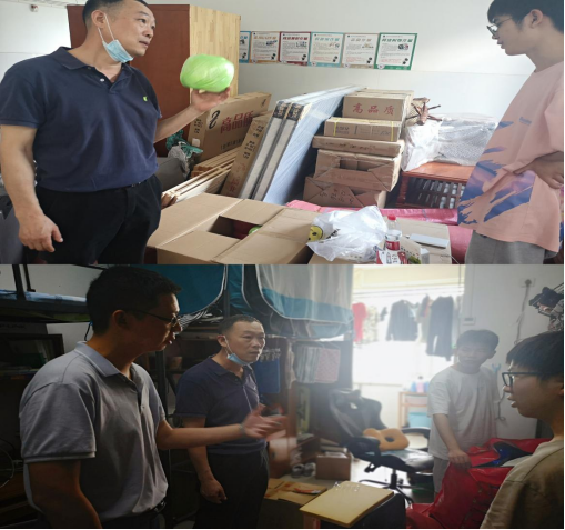 尽管天气炎热、人流量大、物品繁重,但公司学子展现出了克服困难的勇气、高度的行动力和大局意识。搬出员工自觉主动承担打扫原寝室卫生的责任,桌椅床板、墙面地面,干干净净,整个寝室焕然一新,为后续搬入的员工制造良好的居住环境。党员先锋队早早在九栋门口支起服务点,为搬迁员工提供帮助和服务。结对帮扶的志愿者和搬迁员工默契配合,同学之间互帮互助,以饱满的精神状态开展搬迁工作。行李搬运结束后,本科生辅导员冯亮、金亦心、刘小雨、赵鹏和研究生辅导员张桥进入寝室走访,与初到“新家”的同学们亲切交谈。