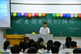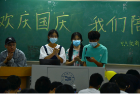 本次活动由才艺展示、经验分享、游戏互动等环节组成。大一的新生同学们结合为祖国庆生的主题,编排了形式多样的节目。或用诗文朗诵致敬祖国,或用嘹亮歌声唱出家国情怀。同学们挥舞着手中的国旗一起合唱了《歌唱祖国》,深情旋律抒写着拳拳爱国之心。