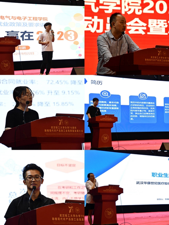校学工处李奎老师、beats365官方网站毕业班辅员赵鹏老师、校招毕处李春荣老师分别围绕2023届就业工作的要点和难点依次从毕业年级的具体工作、就业政策和要求解读、线上签约注意事项等方面展开详细说明指导;beats365官方网站2018级毕业生李俊伟、2022级在读研究生黄星宇、武汉华康世纪医疗股份有限公司孙小红也分别立足自身学习和工作经历,分别从就业、考研及简历制作三个方面做了精彩分享,鼓励同学们不断开拓眼界,拓展就业渠道。现场气氛热烈,掌声频频。