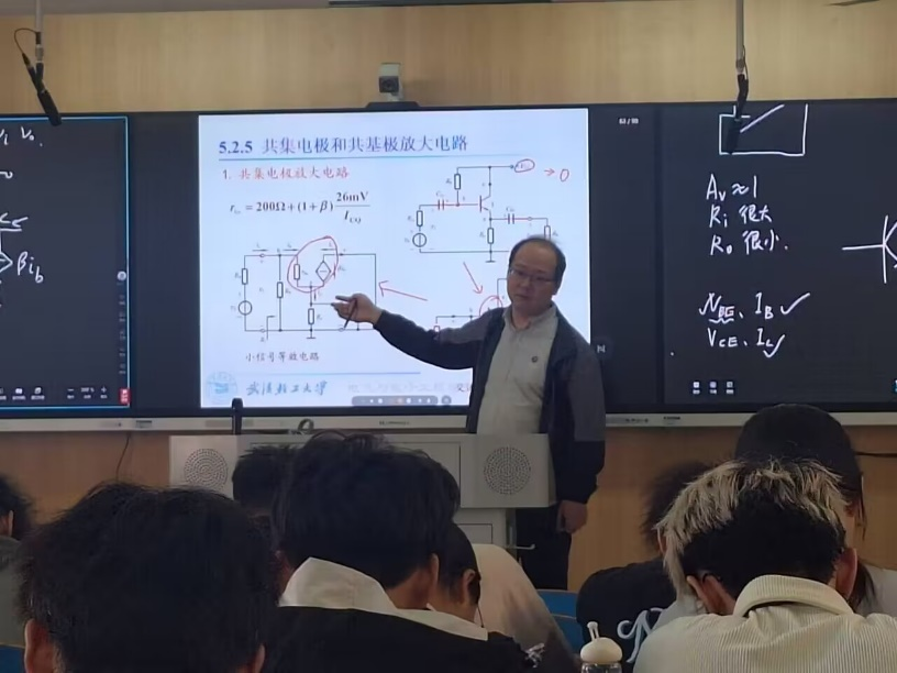 向老师此次在模拟电子技术课程思政公开课上主要讲授的内容是三极管的共集电极和共基极放大电路。首先,回顾了三极管共射极放大电路,然后根据电路特点,引出了三极管的三种组态放大电路,并重点分析了共集电极放大电路。在分析共集电极电路时,通过等效电压放大模型,使员工不仅掌握了具体电路的定量分析,还能从整体角度去掌握电路特点。最后,介绍了共基极放大电路,并对三种组态放大电路做了对比和总结。