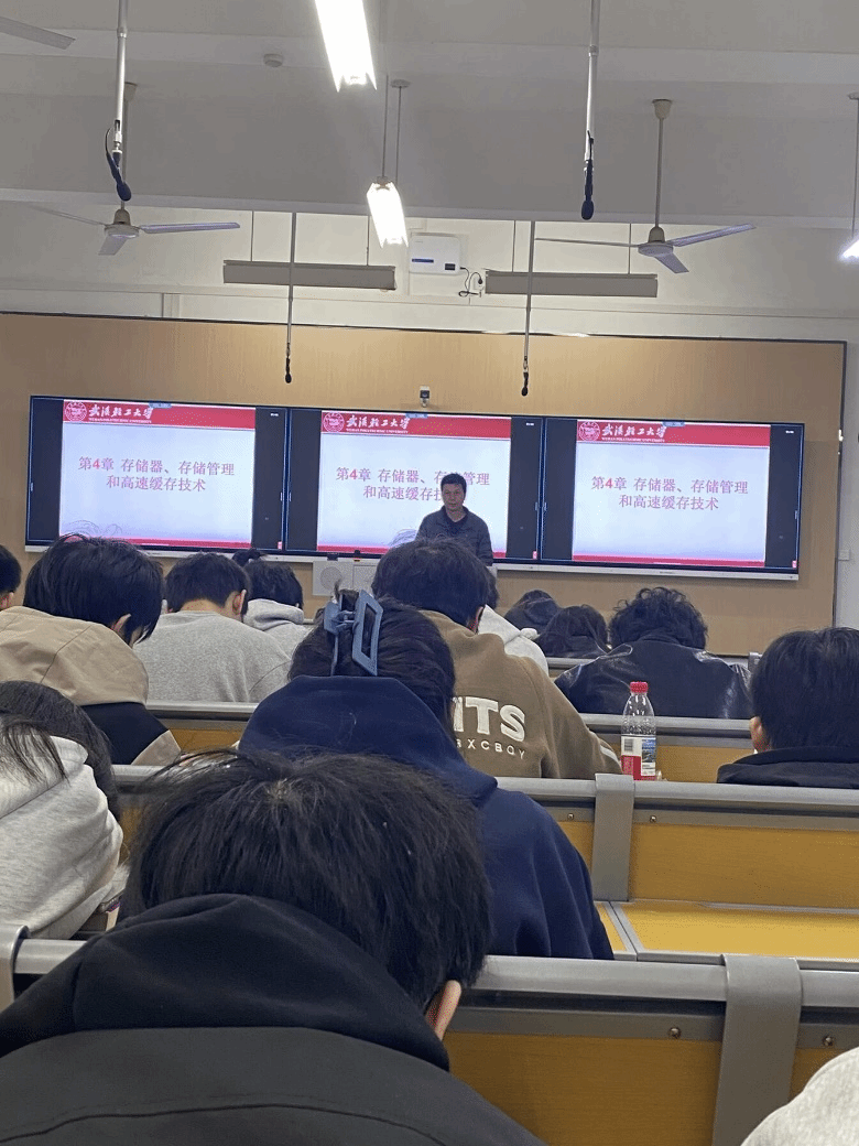 在专业知识讲解中,程光晖老师系统介绍了存储器的分类、工作原理及技术发展趋势,重点展示了我国在存储器领域取得的突破性进展——武汉长江存储自主研发的3D NAND闪存晶圆及颗粒,以及合肥长鑫存储实现的动态随机存取存储芯片(DRAM)量产。他通过对比国内外技术发展历程,凸显了我国从技术追随者向创新引领者转变的艰辛与成就。程光晖老师还寄语同学们:“希望你们带着使命感学习本章内容,未来或为设计更强的‘中国芯’贡献智慧,或为守护国家网络空间安全奉献力量。” 引导同学们将个人发展与国家需求紧密结合。