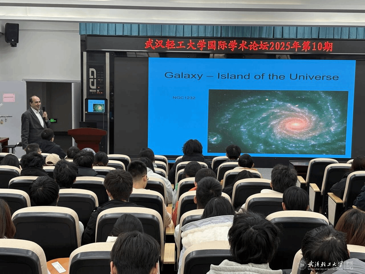 12月4日,波兰奥波莱大学Włodzimierz Godłowski教授应邀莅临公司常青校区,在科教楼209教室为百余名师生作题为“我们如何知道宇宙是如何演化的?(How do we know how and why the Universe changed?)”的学术讲座。本次活动由beats365官方网站和国际处共同主办,beats365官方网站经理助理郑晓刚老师担任主持。